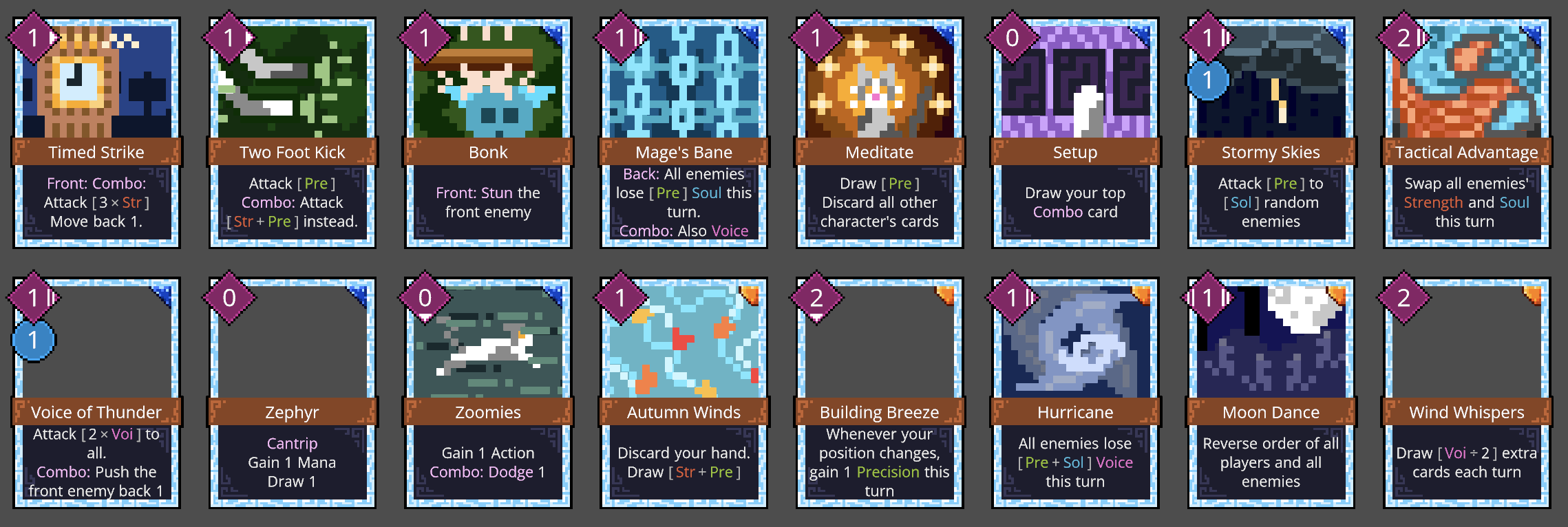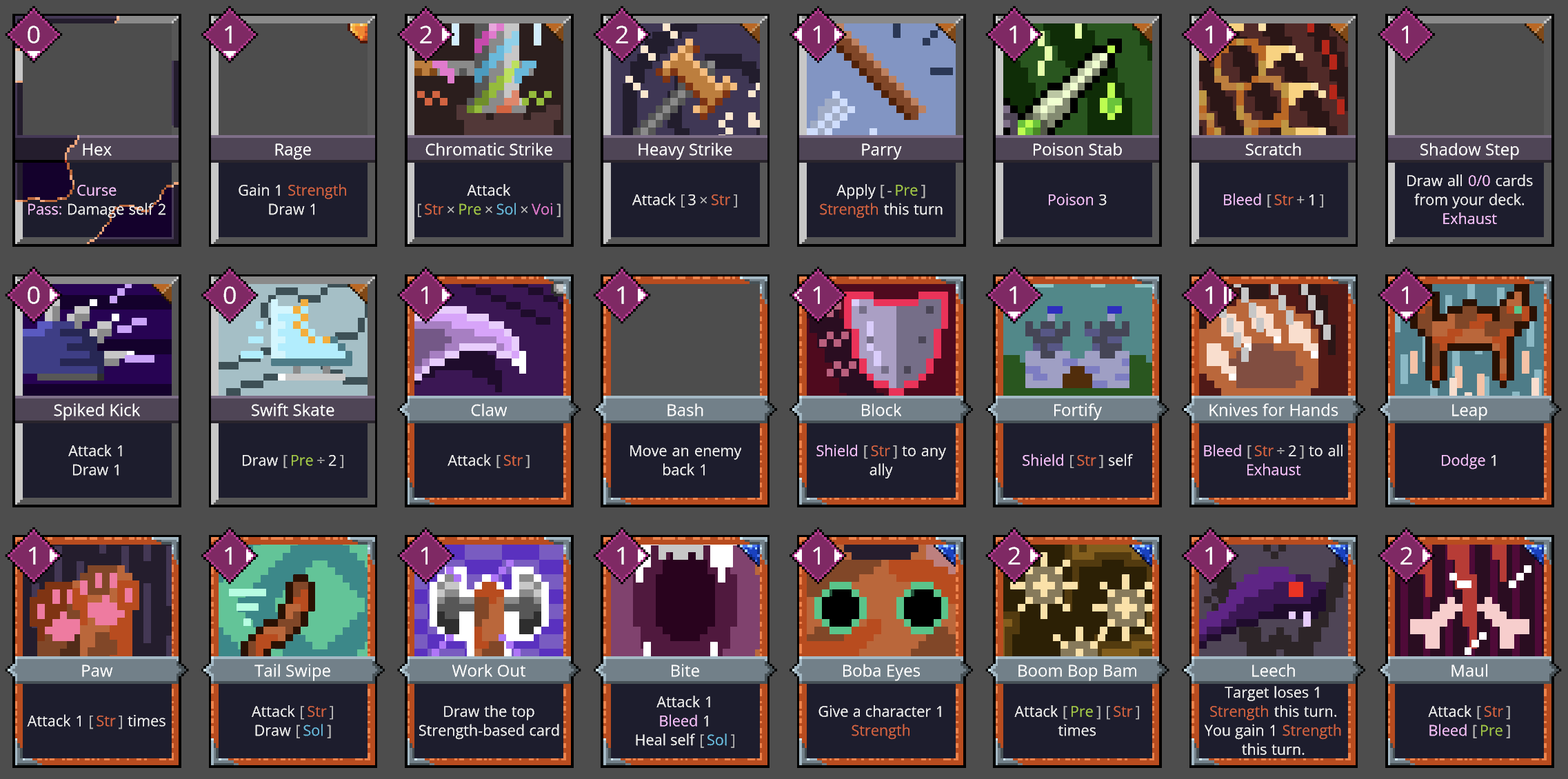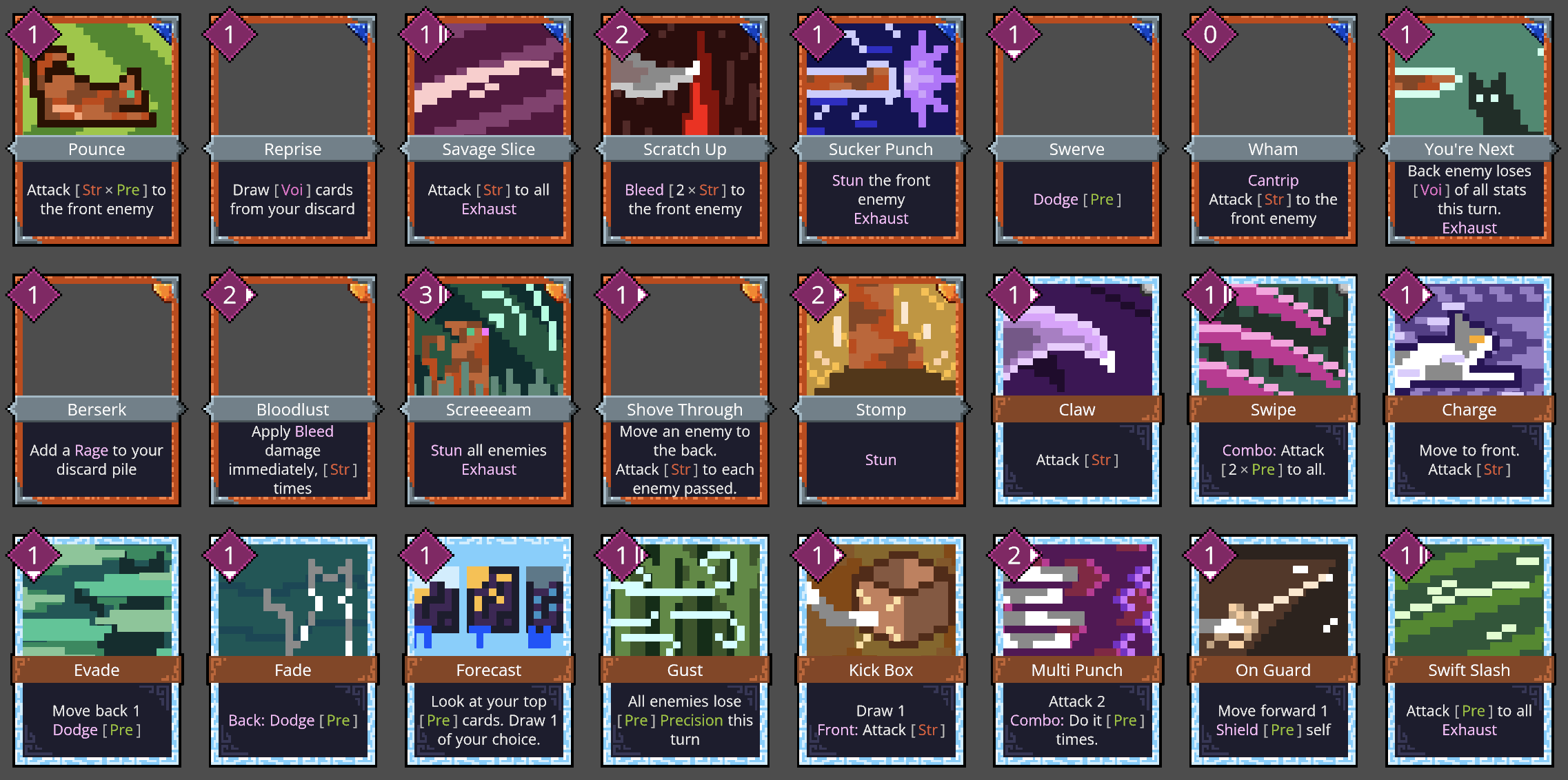 There are a few new cards this week (from equips that generate cards) but most of the changes to the card library are from additional art assets. I didn't originally intend to do so much card art this week, but it seemed a good alternative when I was hitting writer's block on events.