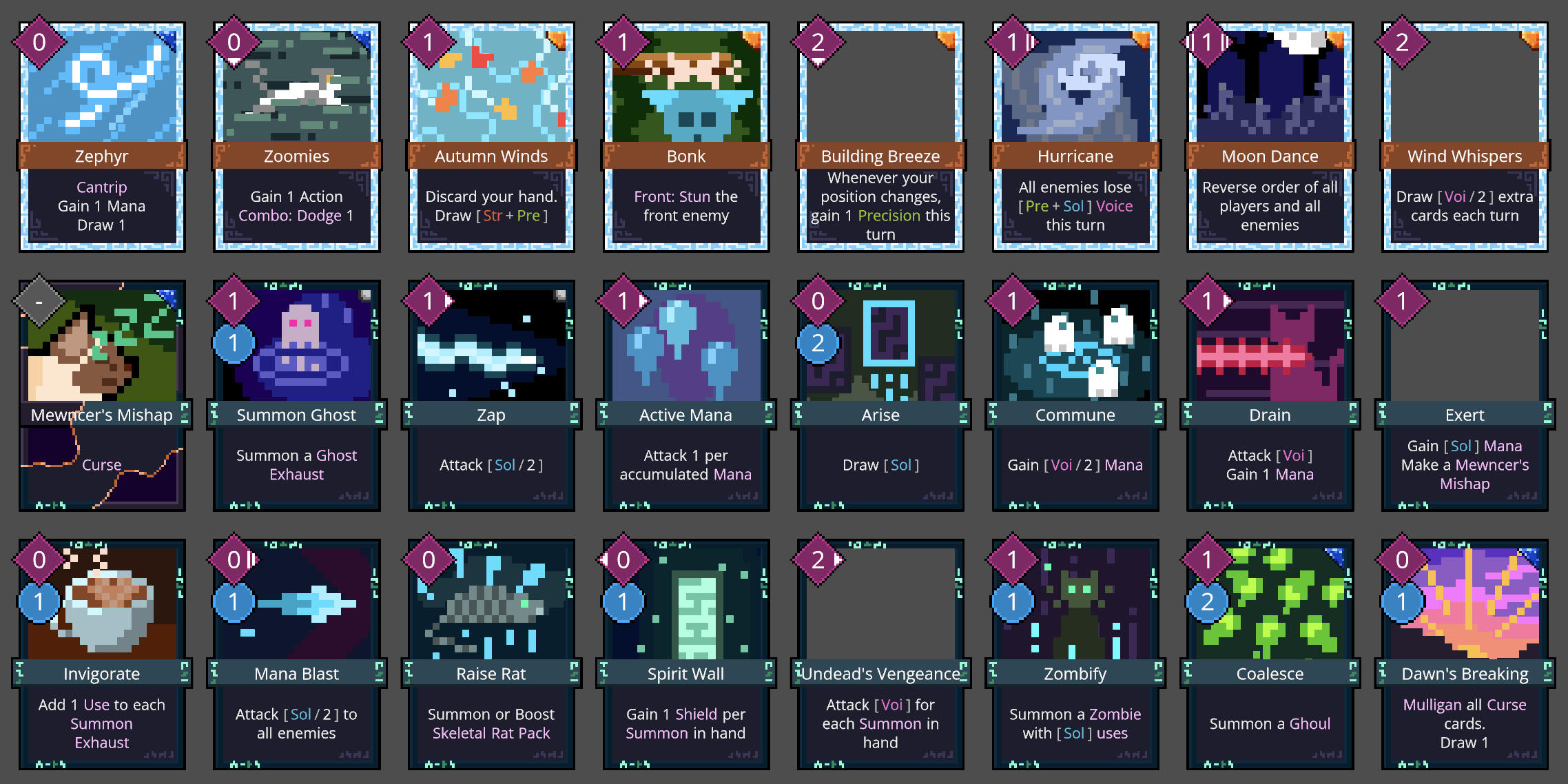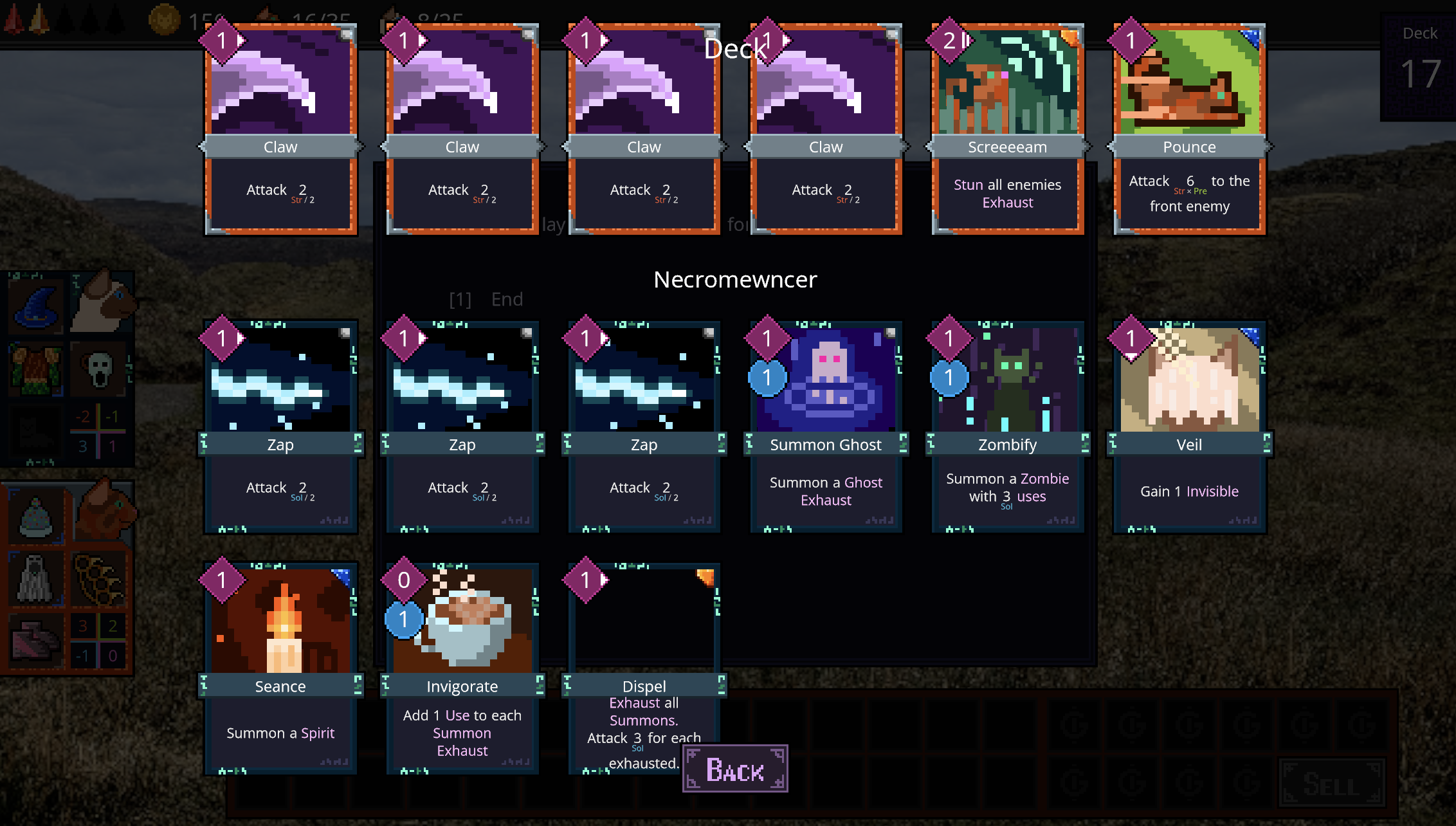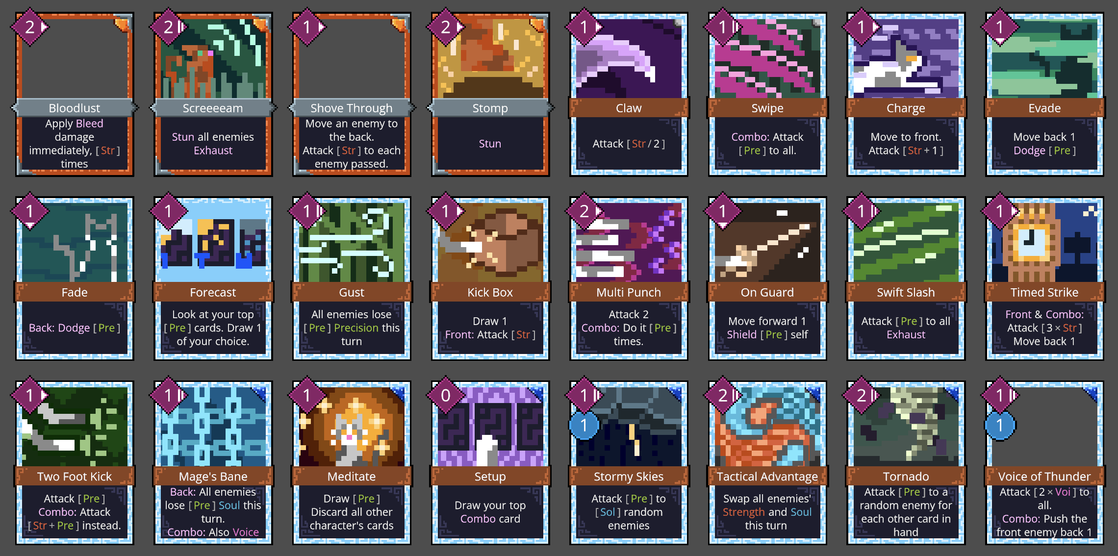The artificer is based around upgrading cards; a lot of their cards have upgraded versions, and one of their starter cards allows them to upgrade cards during battle. Unlike other deckbuilders, cards only get upgraded for the current battle; there's no way to upgrade cards in your deck outside of combat.
