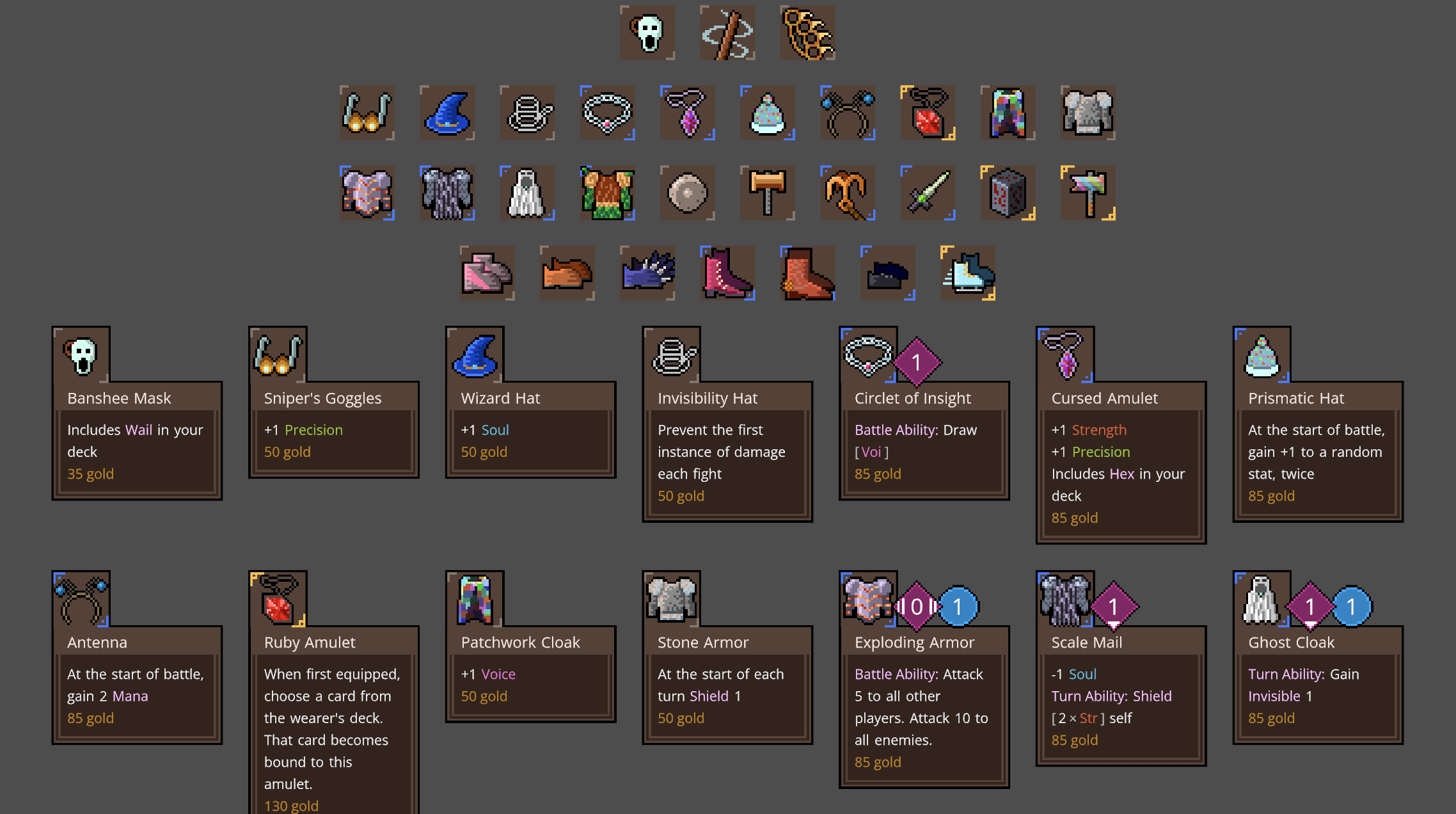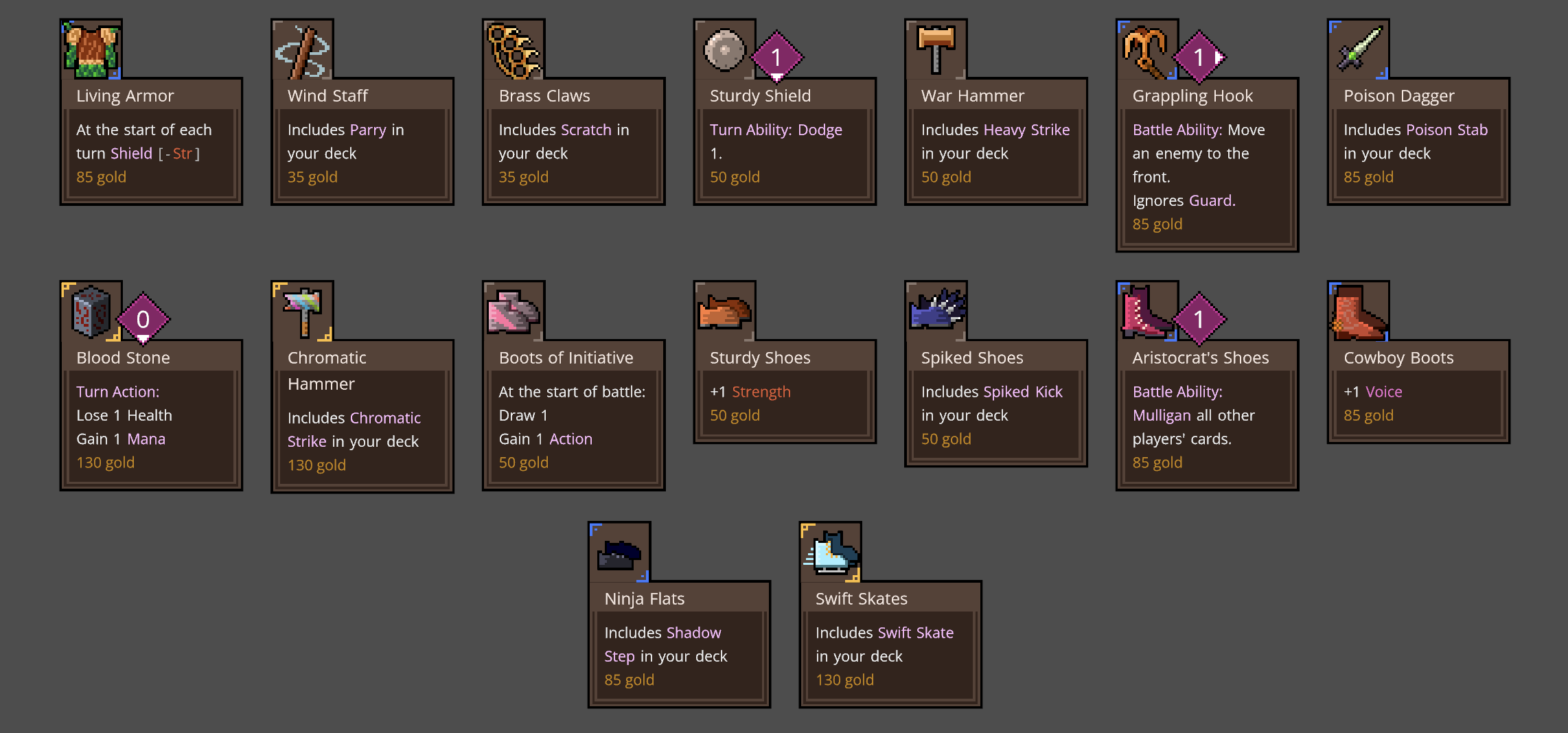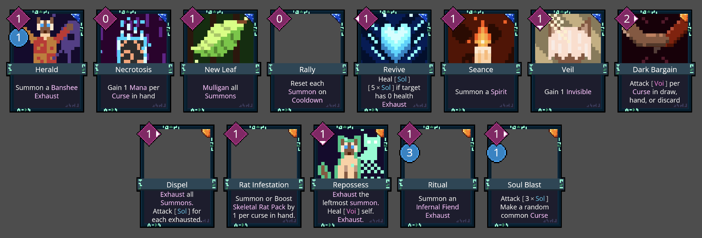 The artificer is based around upgrading cards; a lot of their cards have upgraded versions, and one of their starter cards allows them to upgrade cards during battle. Unlike other deckbuilders, cards only get upgraded for the current battle; there's no way to upgrade cards in your deck outside of combat.